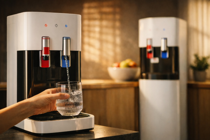Instalamos en tu cocina una fuente de agua con sistema de osmosis inversa, disponible en formato sobremesa o pie, sin obras y en solo unos días. Agua fría, natural y caliente siempre lista, con instalación y mantenimiento incluidos.